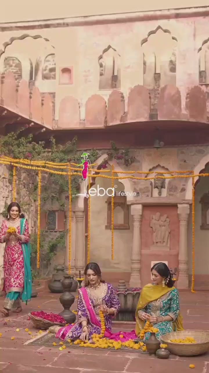 Each ensemble pairs a heavily embroidered kurta with coordinated palazzos and a flowing dupatta edged in gold. These looks are perfect for mehendi nights, sangeet soirées, or festive family gatherings.